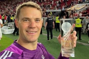 诺伊尔当选本场比赛最佳球员,他更新社媒动态,晒出自己手拿全场最佳奖杯的照片。