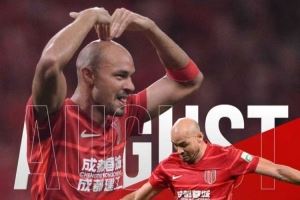 在8月份进行的4场中超联赛(注:八月月度评选范围为联赛第19、20、21、22轮共计4轮比赛)中,成都蓉城取得3胜1平的成绩,期间费利佩共打入5个进球,其中包括战泰山和玉昆的两次梅开二度。